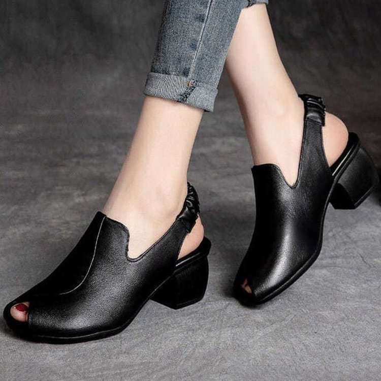 أحذية بمقدمة مفتوحة وكعب عال عريض عصري