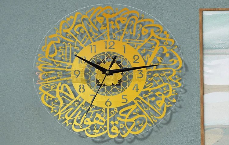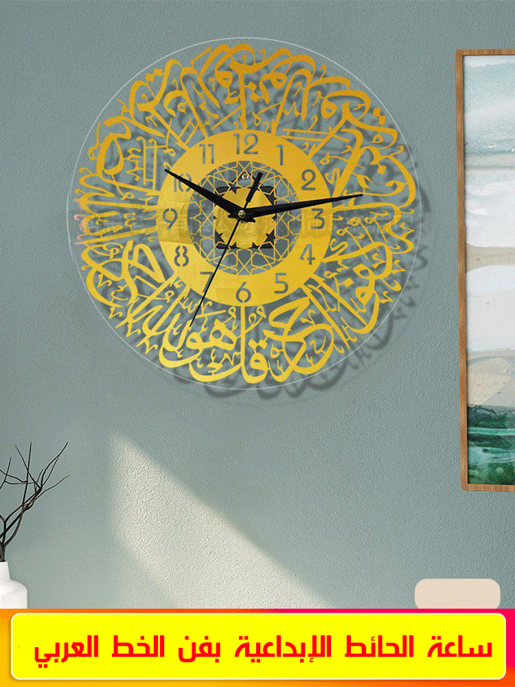 ساعة الحائط الإبداعية بفن الخط العربي، تضيف لمسة أناقة وجمال على غرفة المعيشة،حركة مستوردة سويسرية، مدة التشغيل تصل إلى 30 سنة